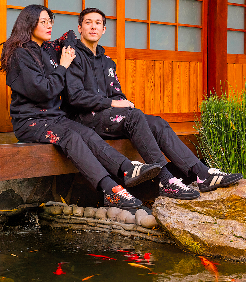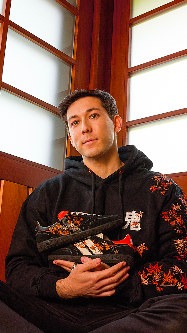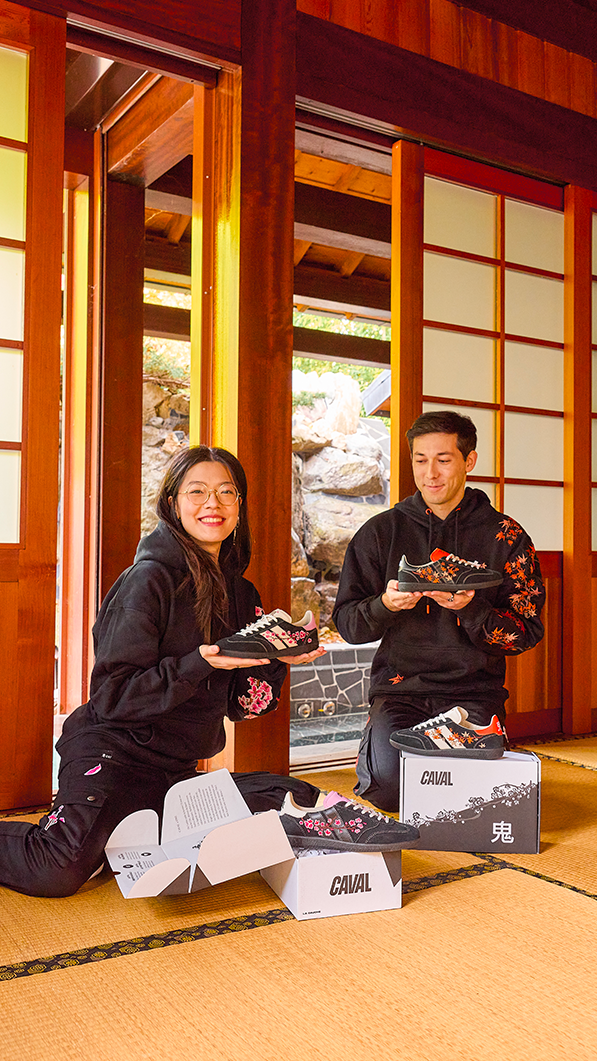 Avec ONI, le vidéaste franco-japonais Louis-San suivi par plus de 1,55 M d’abonnés sur Youtube, brode des motifs traditionnels japonais sur la manche gauche de ses hoodies. Asymétriques par nature, ils ont naturellement fait écho au concept de CAVAL. 👟 De cette passion commune pour l'asymétrie est née une co-création de légende, forgée dans la puissance des contrastes et sublimée par un savoir-faire ancestral. 🪡