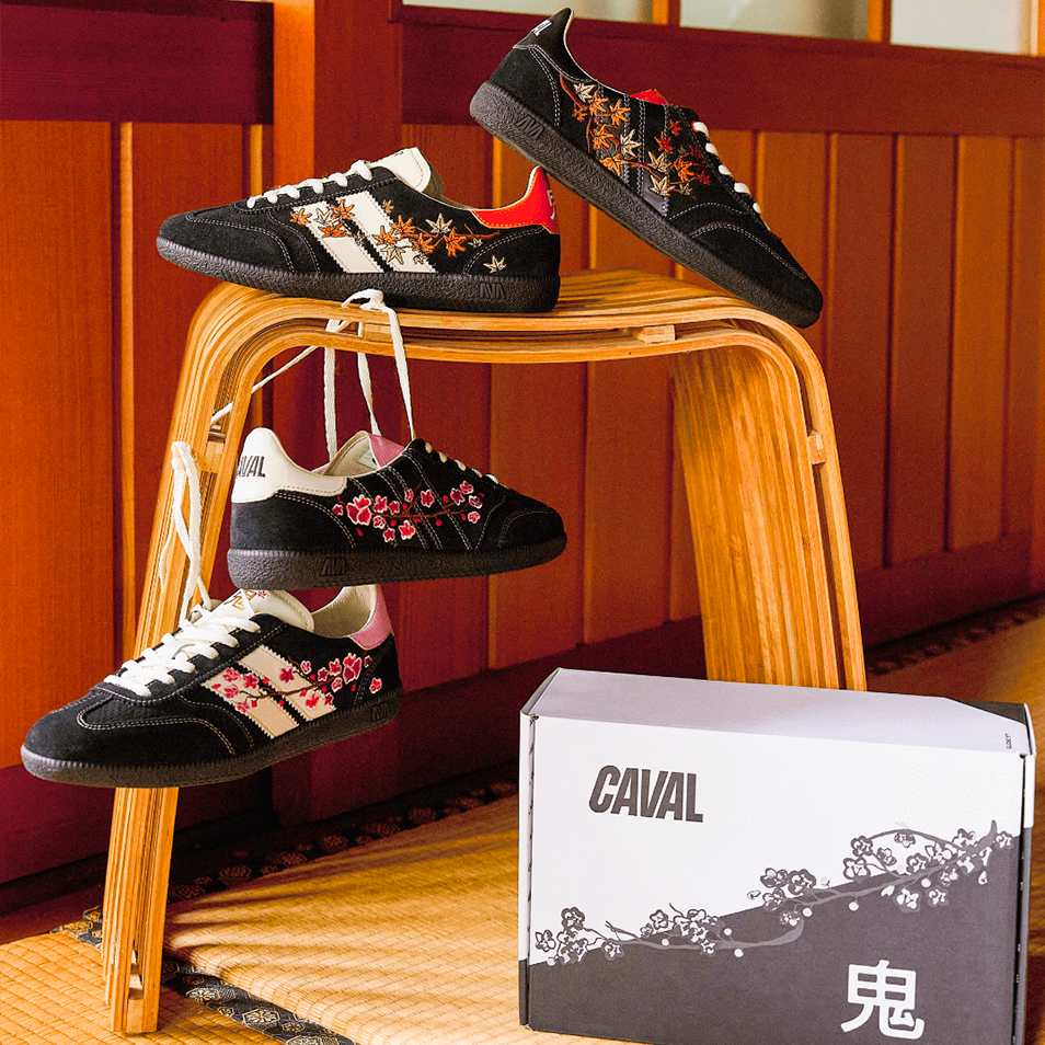 7 différences sont à déceler entre les deux pieds des paires de la collaboration CAVAL x ONI : logos inversés, broderies fleuries en miroir, double-bandes graphiques... Saurez-vous toutes les retrouver ? 👀
