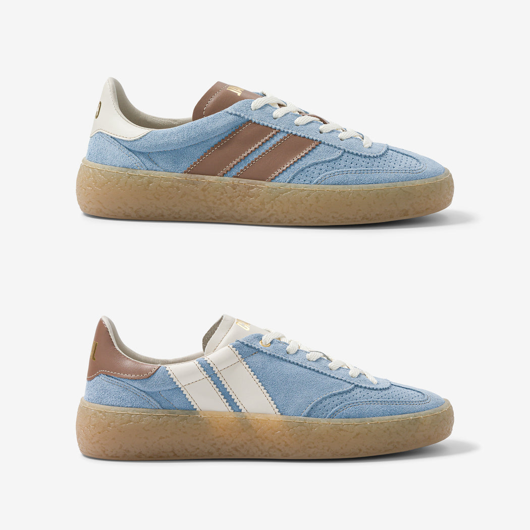 Les Sky Latte sont unisexes et asymétriques. Elles sont confectionnées entièrement en Europe avec des matériaux éco-responsables, traçables et labellisés.