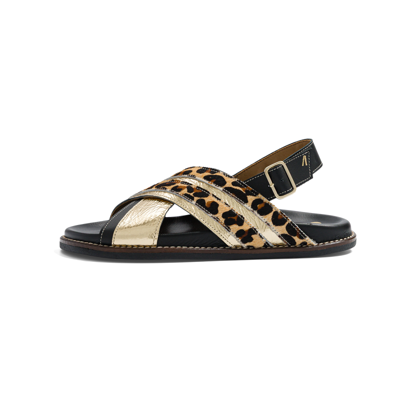 Les Leo Shine sont des sandales asymétriques plates avec brides croisées. Conçues pour allier style graphique et confort, elles s'ajustent parfaitement grâce à leur boucle arrière en métal réglable. Le cuir italien certifié LWG apporte souplesse, élégance et durabilité, tandis que la construction Fussbett offre un excellent soutien du pied au quotidien.