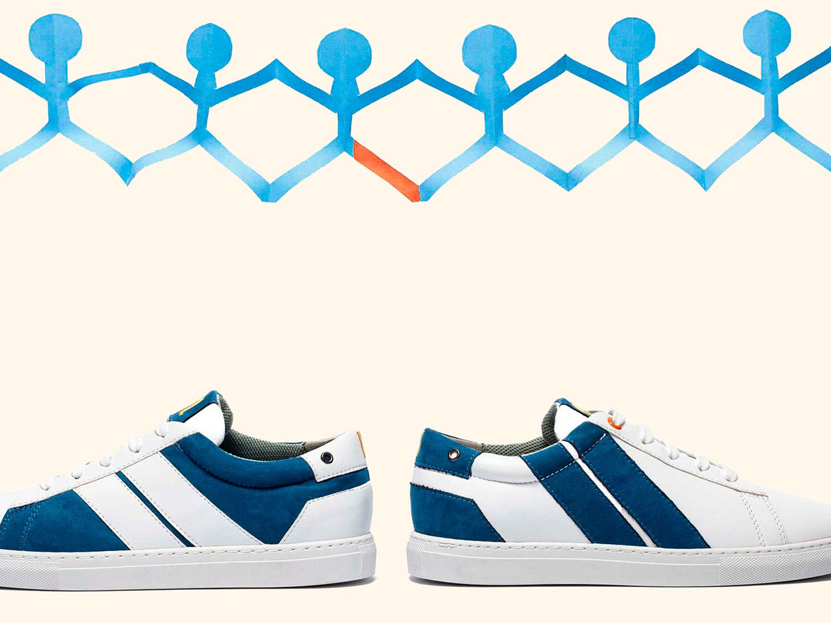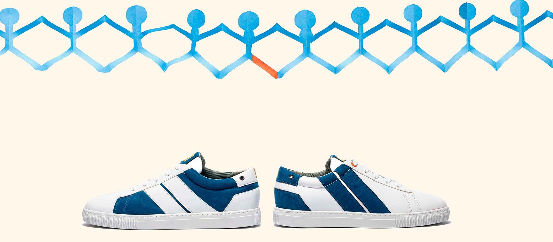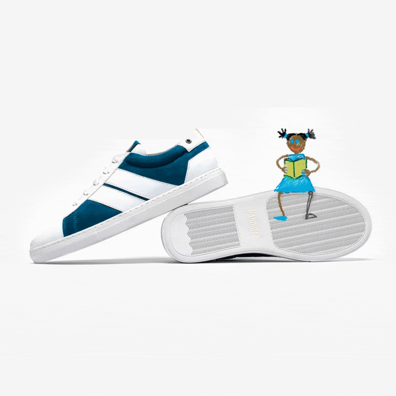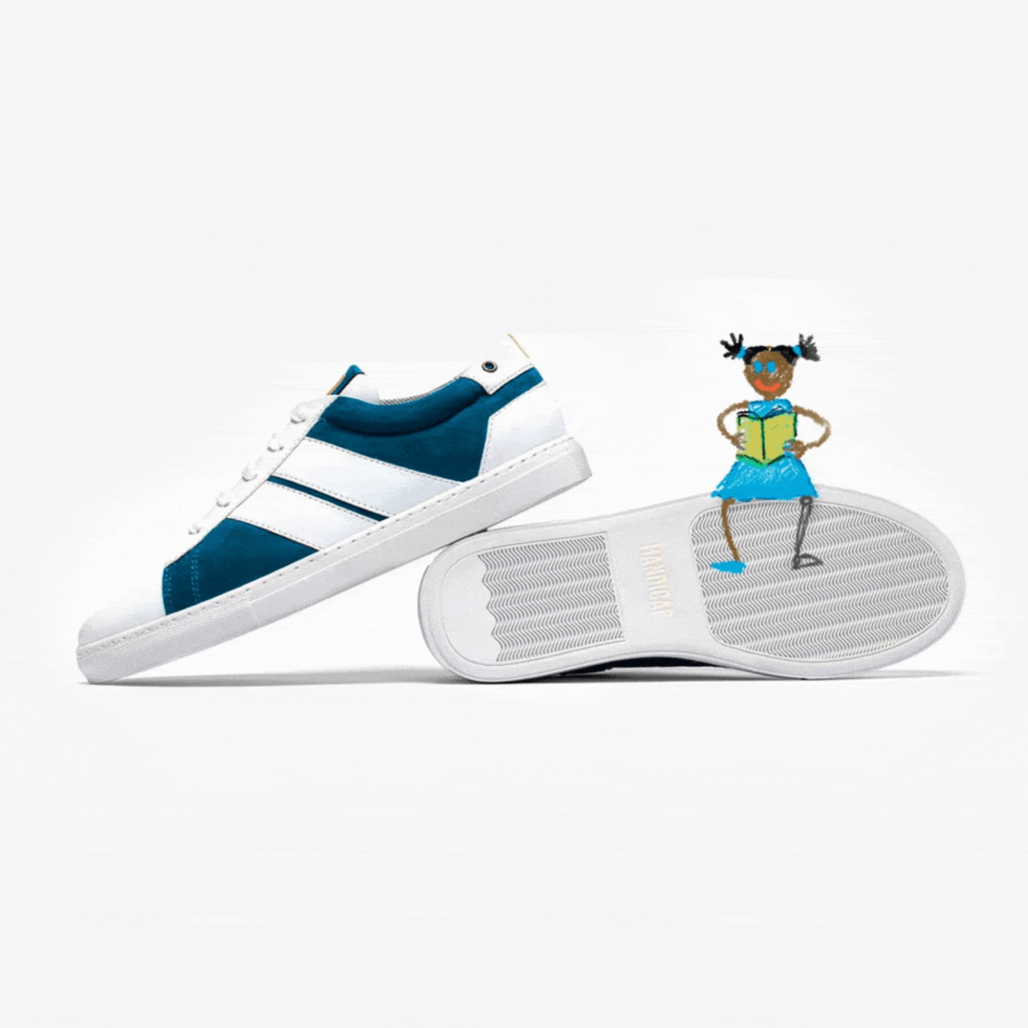 En septembre 2020, nous lançons notre première paire solidaire entièrement revisitée aux couleurs d'Handicap International, avec broderies et marquages spécifiques. Sur chaque paire, l'ensemble des bénéfices sont reversés à l'ONG pour soutenir le programme #School4all.