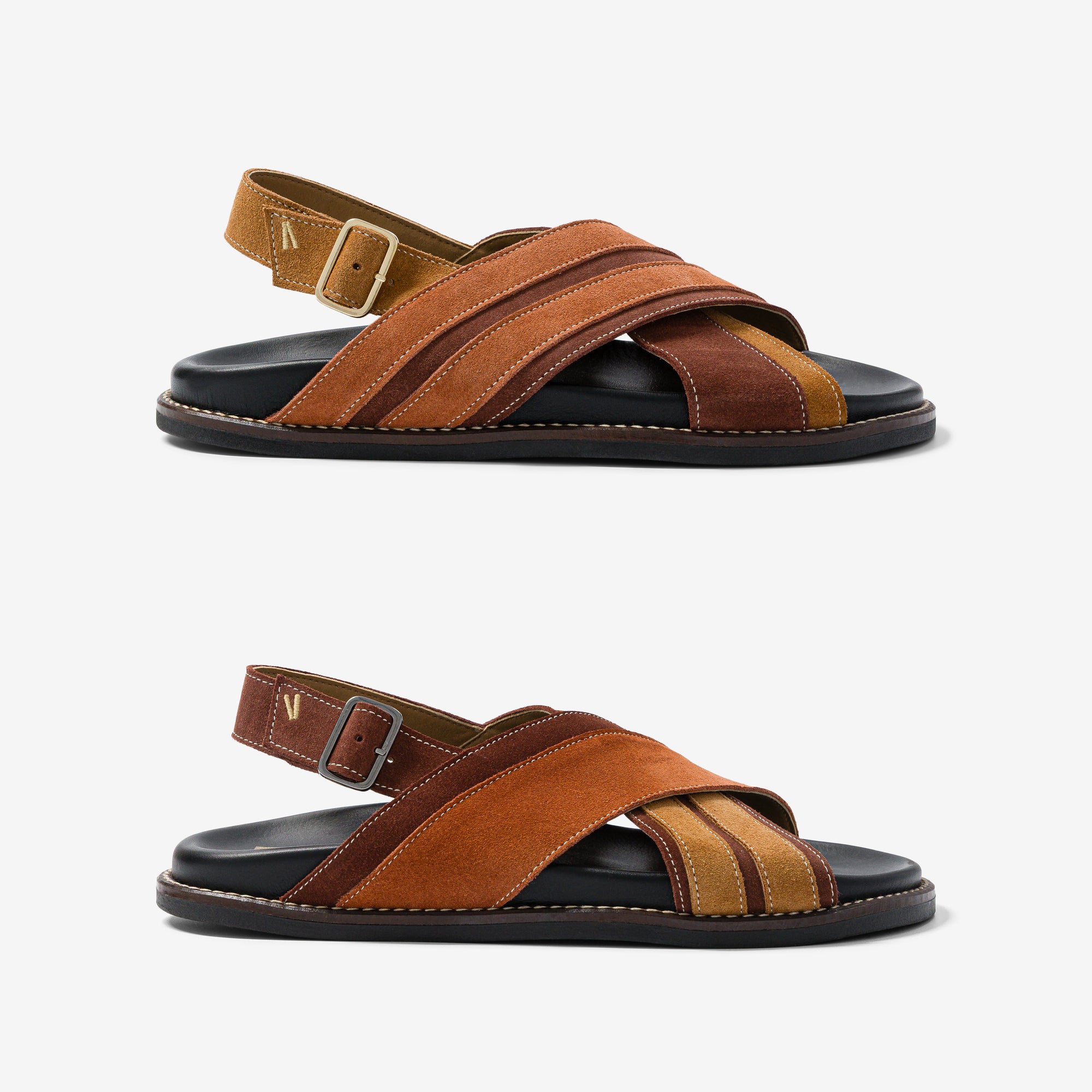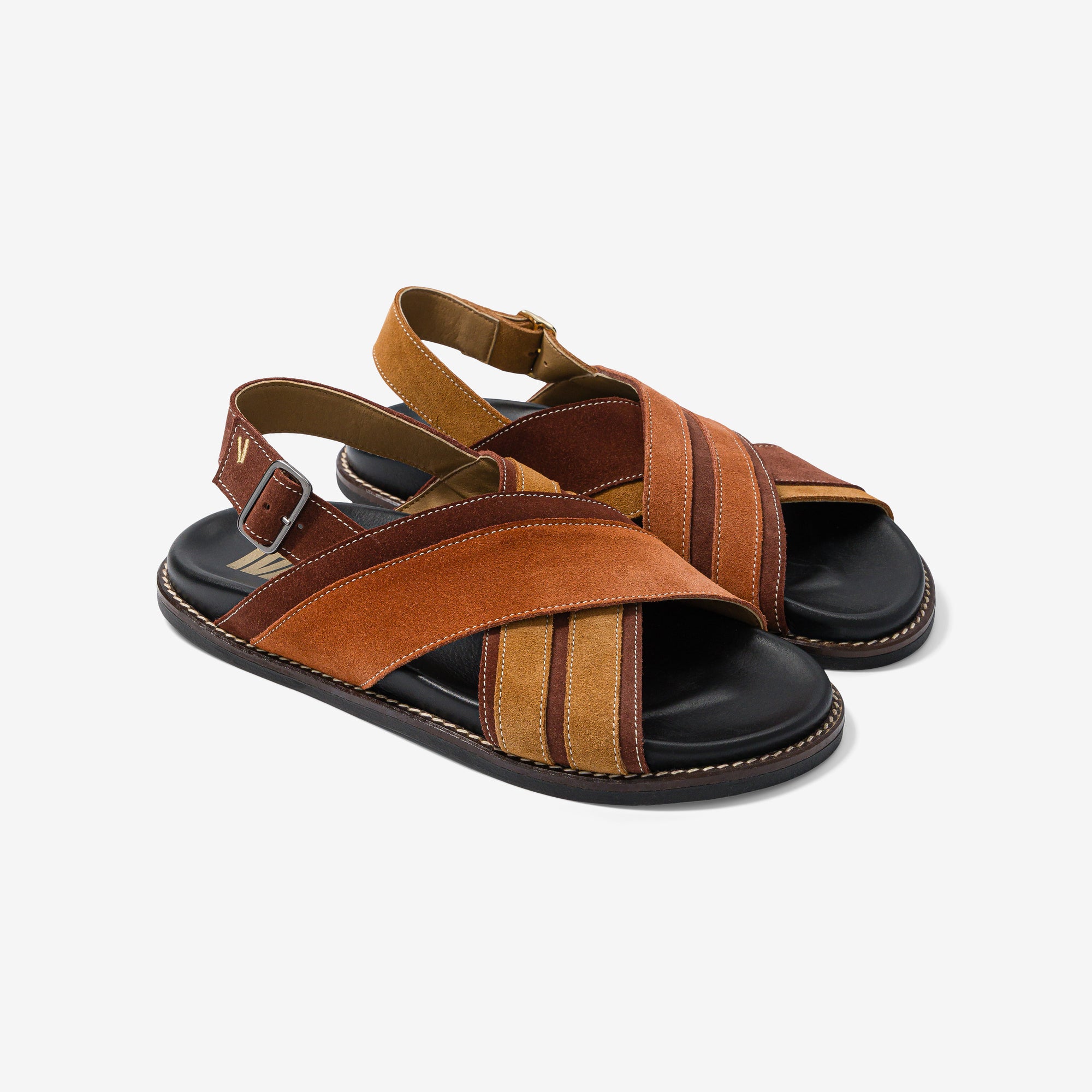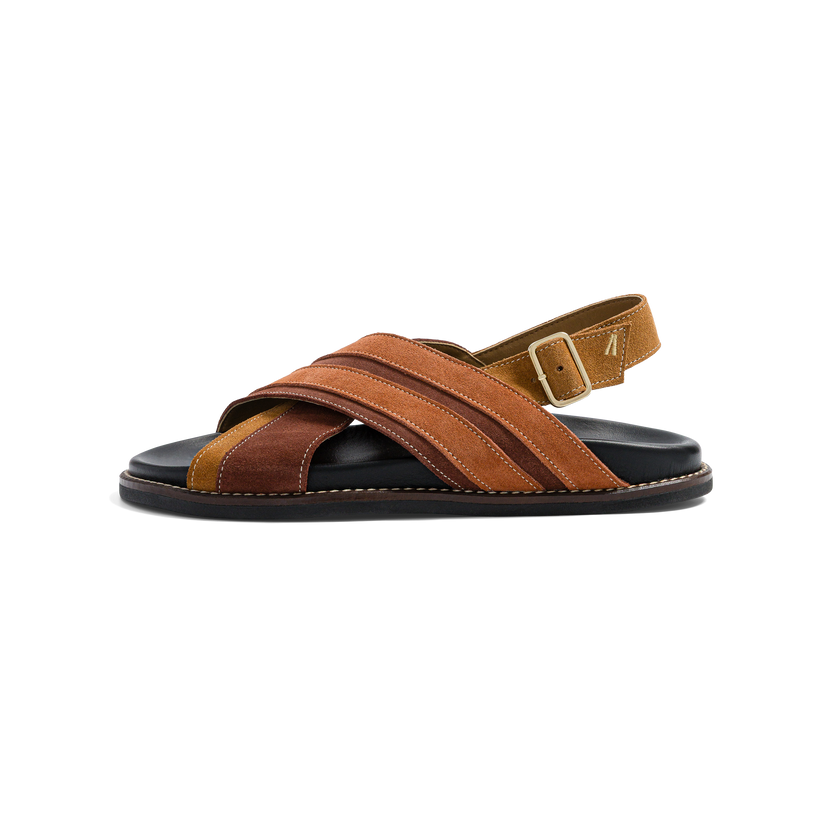 Les Cognac Valley sont des sandales asymétriques plates avec brides croisées. Conçues pour allier style graphique et confort, elles s'ajustent parfaitement grâce à leur boucle arrière en métal réglable. Le cuir italien certifié LWG apporte souplesse, élégance et durabilité, tandis que la construction Fussbett offre un excellent soutien du pied au quotidien.
