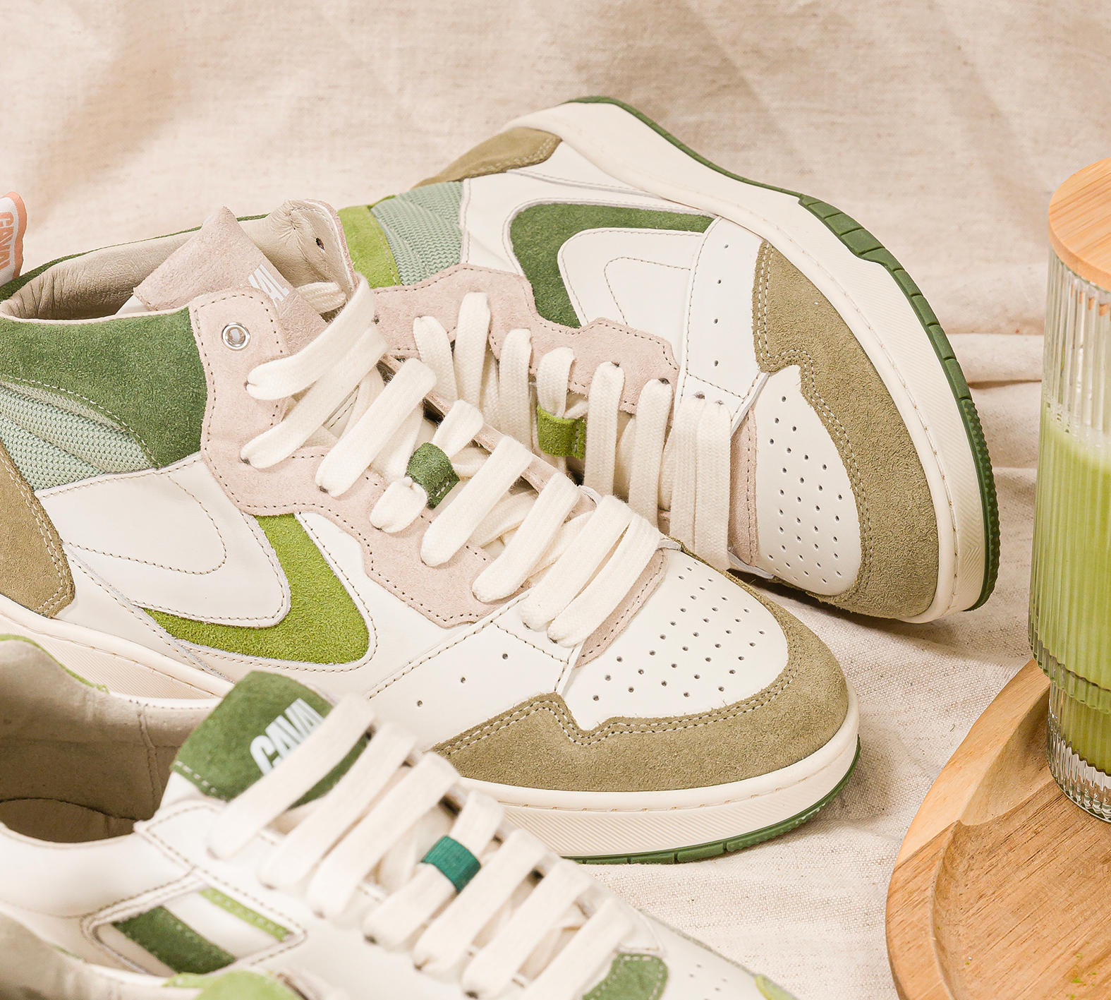 Les Matcha Glow sont des sneakers montantes et asymétriques de la collection Snake qui vous arrivera enfin à la cheville. Misant sur un confort inégalable et une tige mid inspirée des sneakers des années 80, les 7 différences se dessinent par des entrelacements serpentins de matières, de couleurs et de formes. Un retour vers le futur asymétrique assumé pour devenir la star montante du dépareillement.