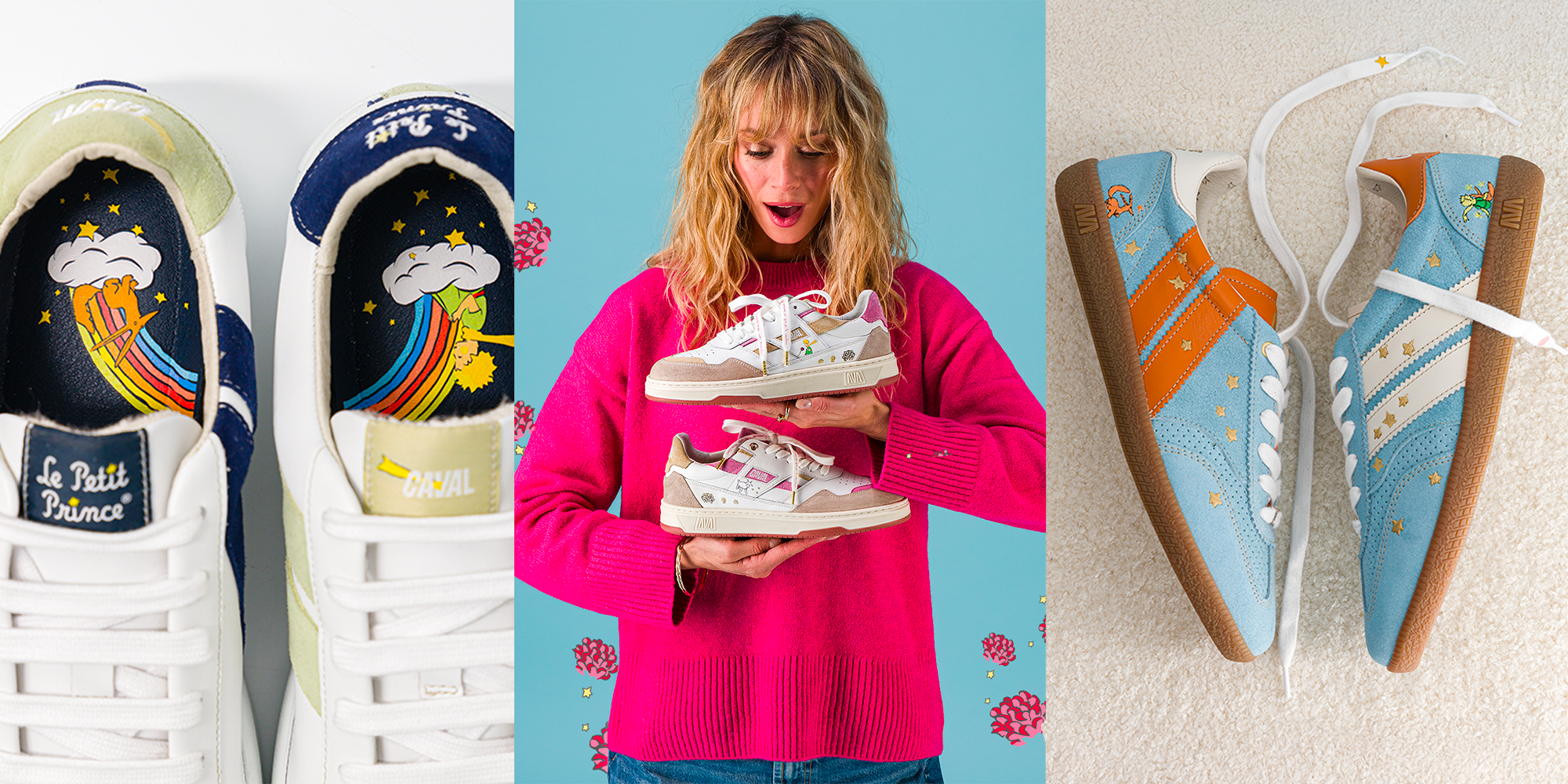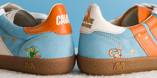 Le poétique Petit Prince et l’asymétrique CAVALier imaginent des co-créations de légende "pour cueillir les étoiles". 💫 Une constellation de détails asymétriques aux couleurs du conte de Saint Exupéry orne les paires de baskets cosmiques et les chaussettes hautes en poésie. Prêts à bondir dans les étoiles ?
