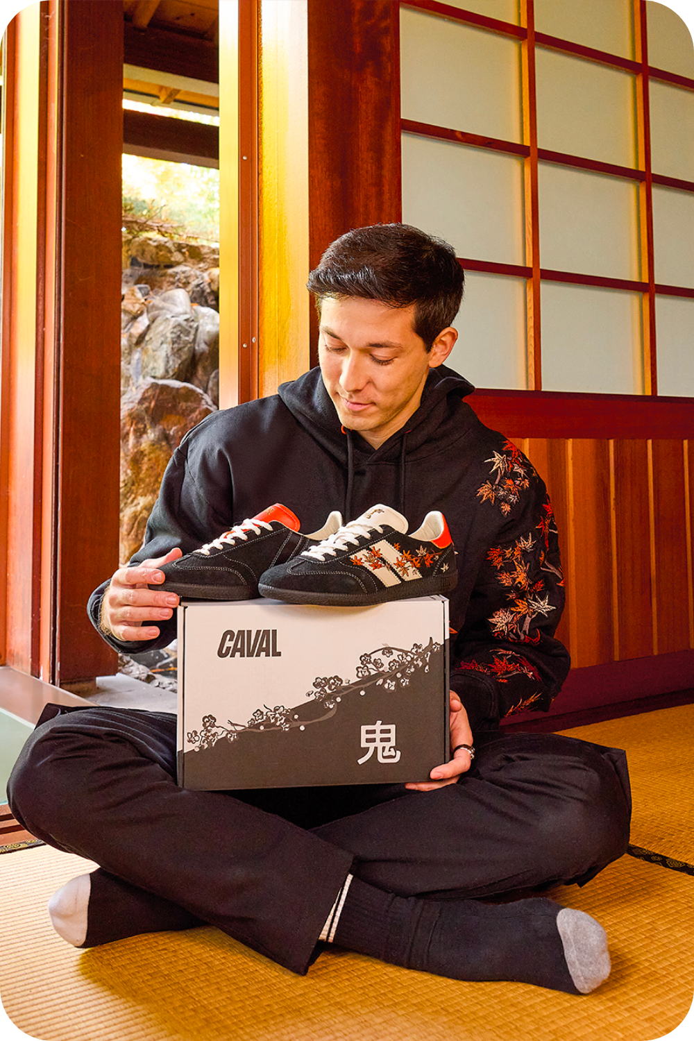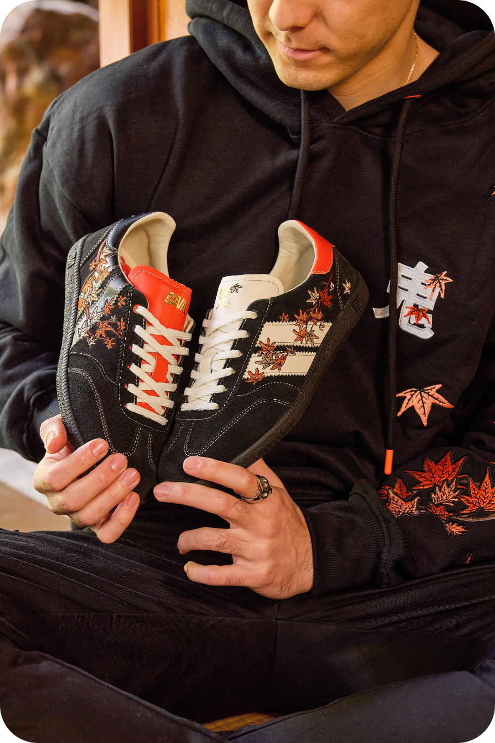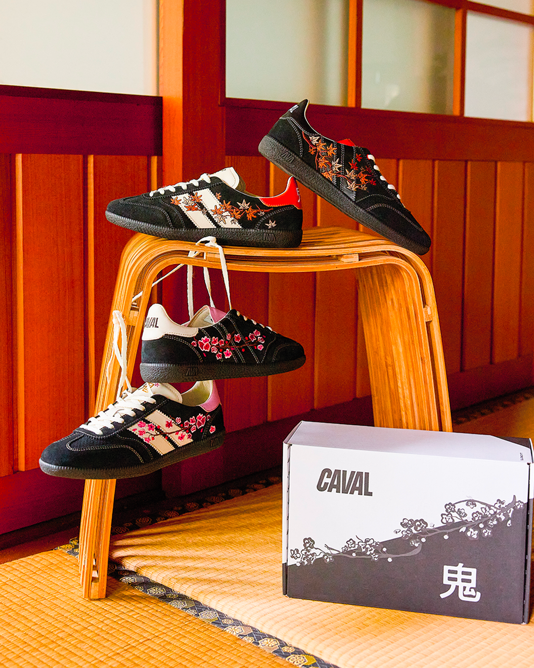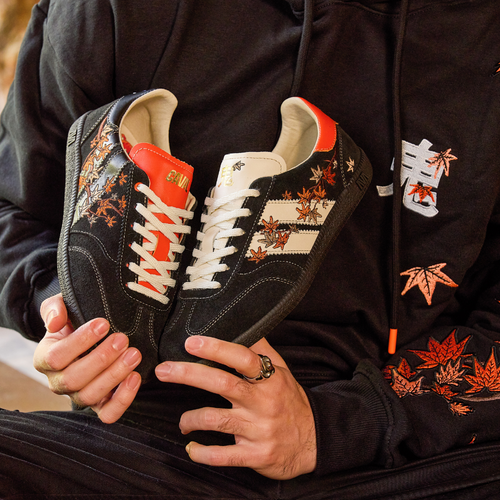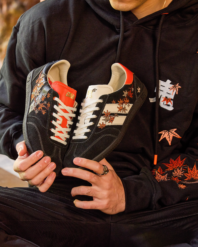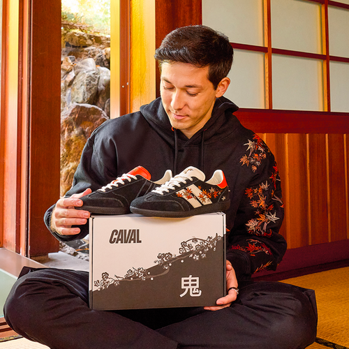 En écho au style emblématique d'ONI, la collection capsule se compose de deux paires de sneakers inédites inspirées de son univers.Bondissez dans la collab' CAVAL x ONI et découvrez la Sakura et la Momiji : deux talismans d'asymétrie aux broderies flamboyantes.
