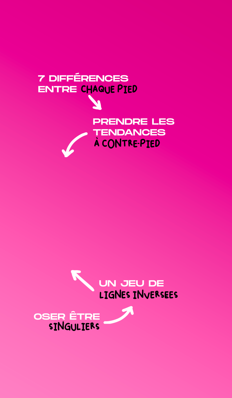 Plongez dans nos designs asymétriques. Toutes nos paires sont construites sur un jeu subtil de 7 différences.