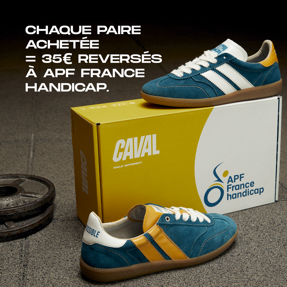 Les CAVAL x APF France handicap sont unisexes et asymétriques. Elles sont confectionnées entièrement en Europe avec des matériaux éco-responsables, traçables et labellisés.