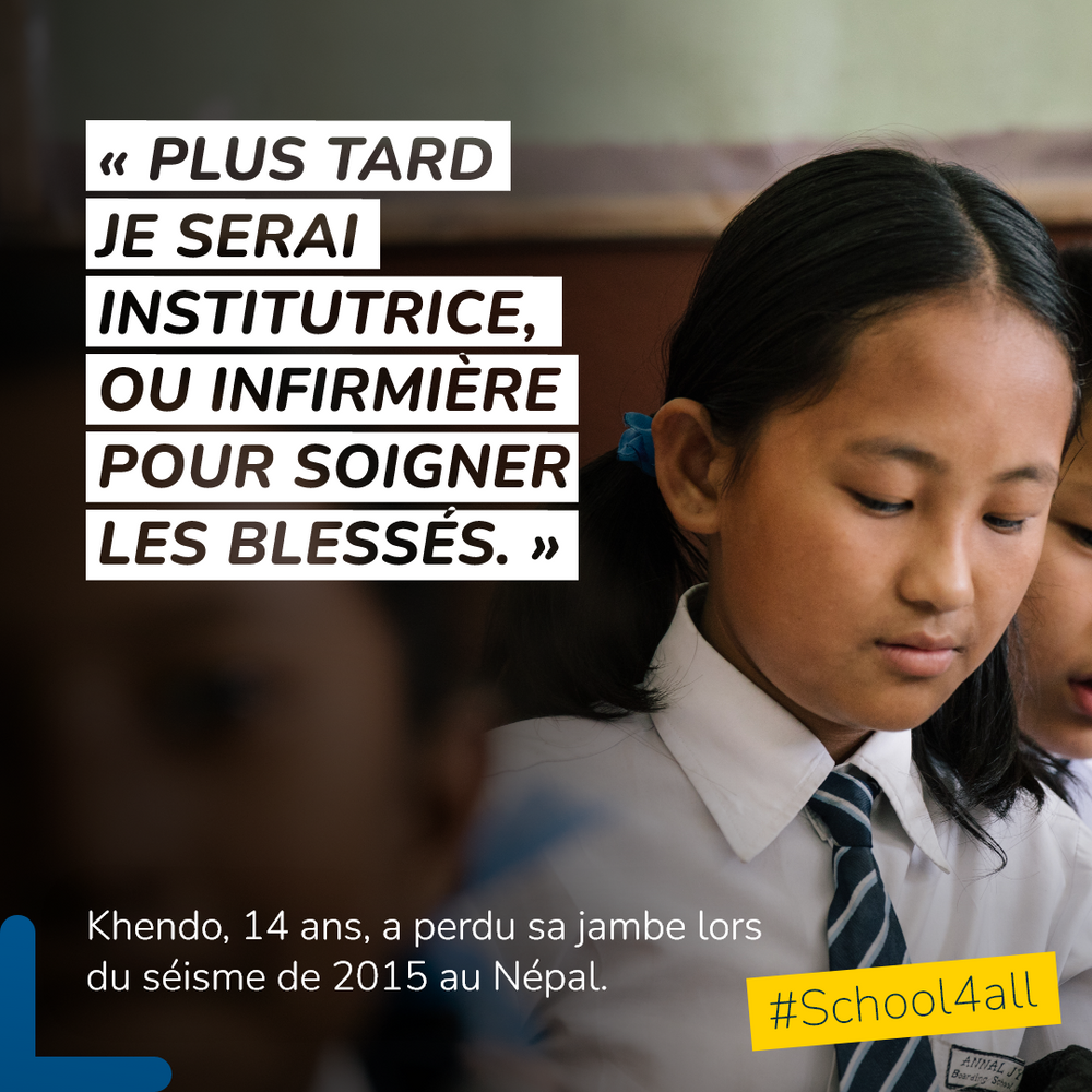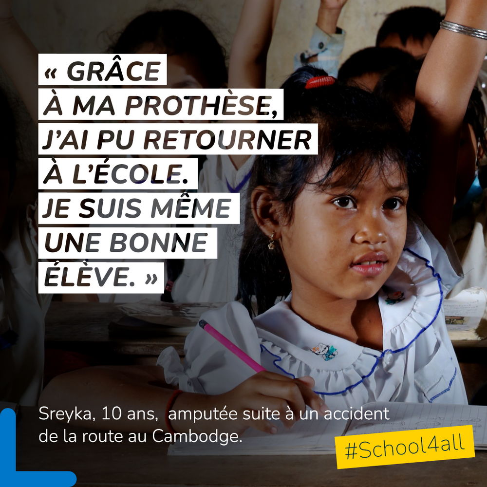 L'ensemble des bénéfices de la paire sont reversés au programme #School4all de Handicap International, soit 40€, ce qui représente le coût d'une prothèse pour un enfant en situation de handicap. #School4all œuvre à l'inclusion scolaire des enfants handicapés dans le monde.