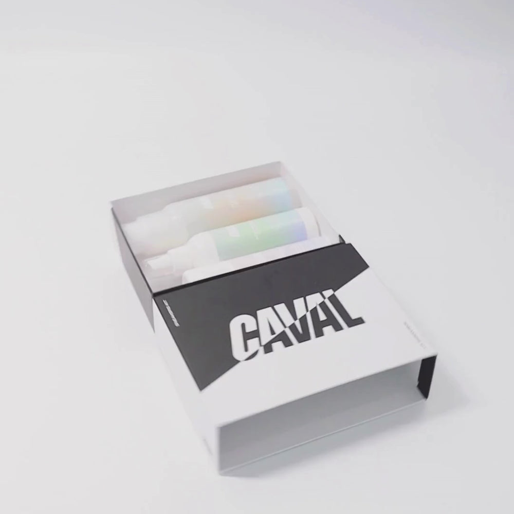 Un tout nouveau trio, imaginé pour choyer vos CAVAL, vient tout juste de voir le jour. Fabriqués en France, ces trois complices seront vos alliés pour des sneakers éternellement éclatantes :